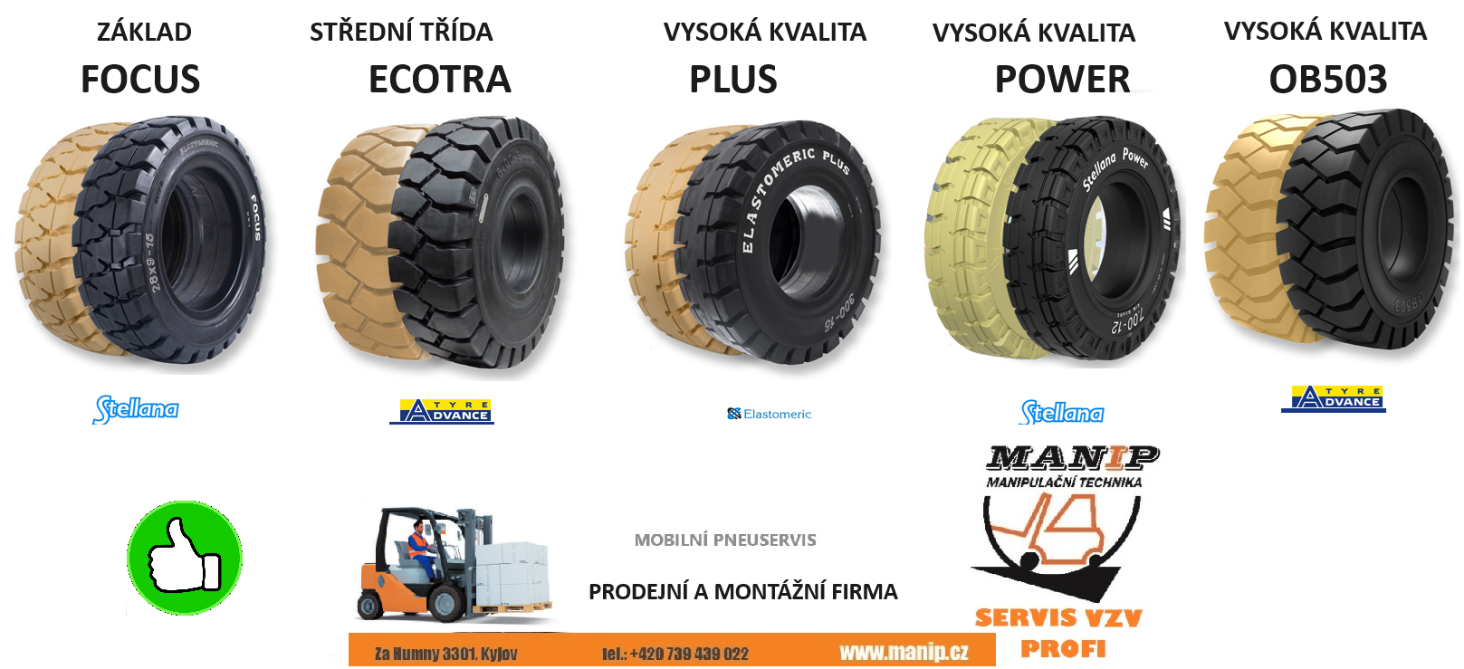 Široký výběr pneumatik různých značek a jejich konstrukcí nám dovoluje doporučit a namontovat co možná nejvhodnější typ pneu pro různé potřeby našich zákazníků. Od těch malých, kteří ujedou pár motohodin za měsíc až po silně vytížené nepřetržité provozy výrobních, obchodních a logistických společností.